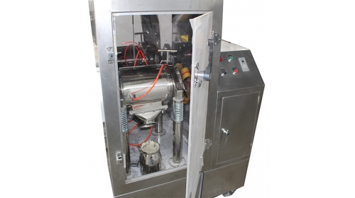 該機為臥式振動磨,物料由加料斗進入粉碎室,經(jīng)振動將粉碎室內(nèi)的研磨棒與物料碰撞、研磨而獲得粉碎,該機配有水冷卻裝置,可控制粉碎室內(nèi)的溫度,整機按“GMP”標準設計,采用不銹鋼制造,設備在全密封狀態(tài)下作業(yè),無粉塵飛揚,無環(huán)境污染。