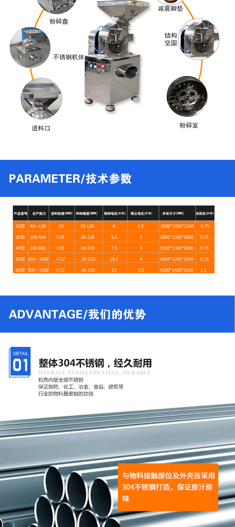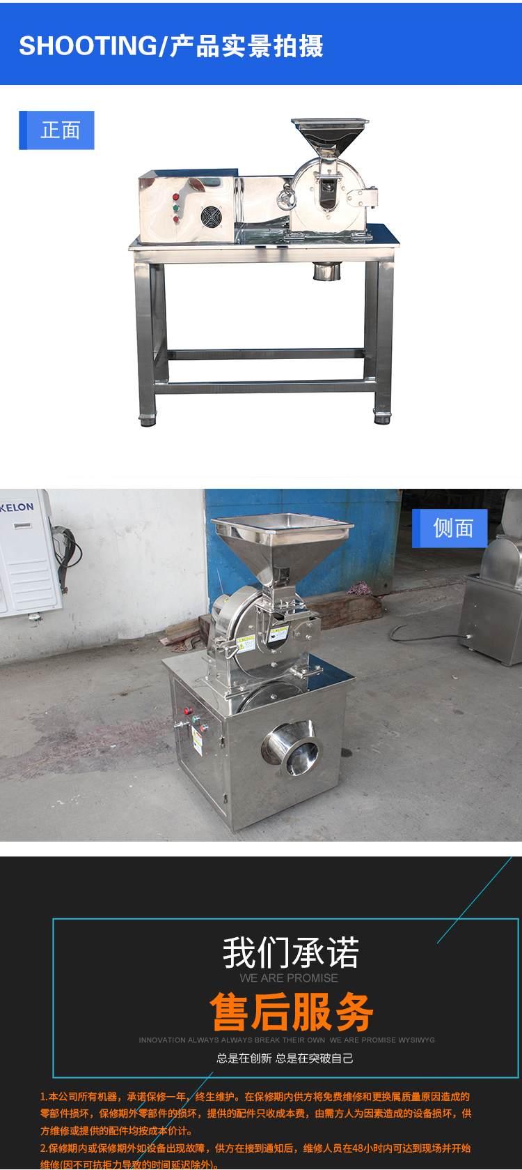 萬(wàn)能粉碎機(jī)利用活動(dòng)齒盤和固定齒盤見(jiàn)的高速相對(duì)運(yùn)動(dòng),使被粉碎物經(jīng)齒沖擊,摩擦及物料彼此間沖擊等綜合作用獲得粉碎。本機(jī)結(jié)構(gòu)簡(jiǎn)單、堅(jiān)固、運(yùn)轉(zhuǎn)平穩(wěn)、粉碎效果良好,被粉碎物可直接由主機(jī)磨腔中排出、粒度大小通過(guò)更換不同孔徑的網(wǎng)篩獲得,另外該機(jī)為全不銹鋼。機(jī)殼內(nèi)壁全部經(jīng)機(jī)加工達(dá)到表面平滑,改變了以前機(jī)型內(nèi)壁粗糙、積粉的現(xiàn)象,使藥品、食品、化工等生產(chǎn)更符合國(guó)家標(biāo)準(zhǔn),達(dá)到GMP的要求。
