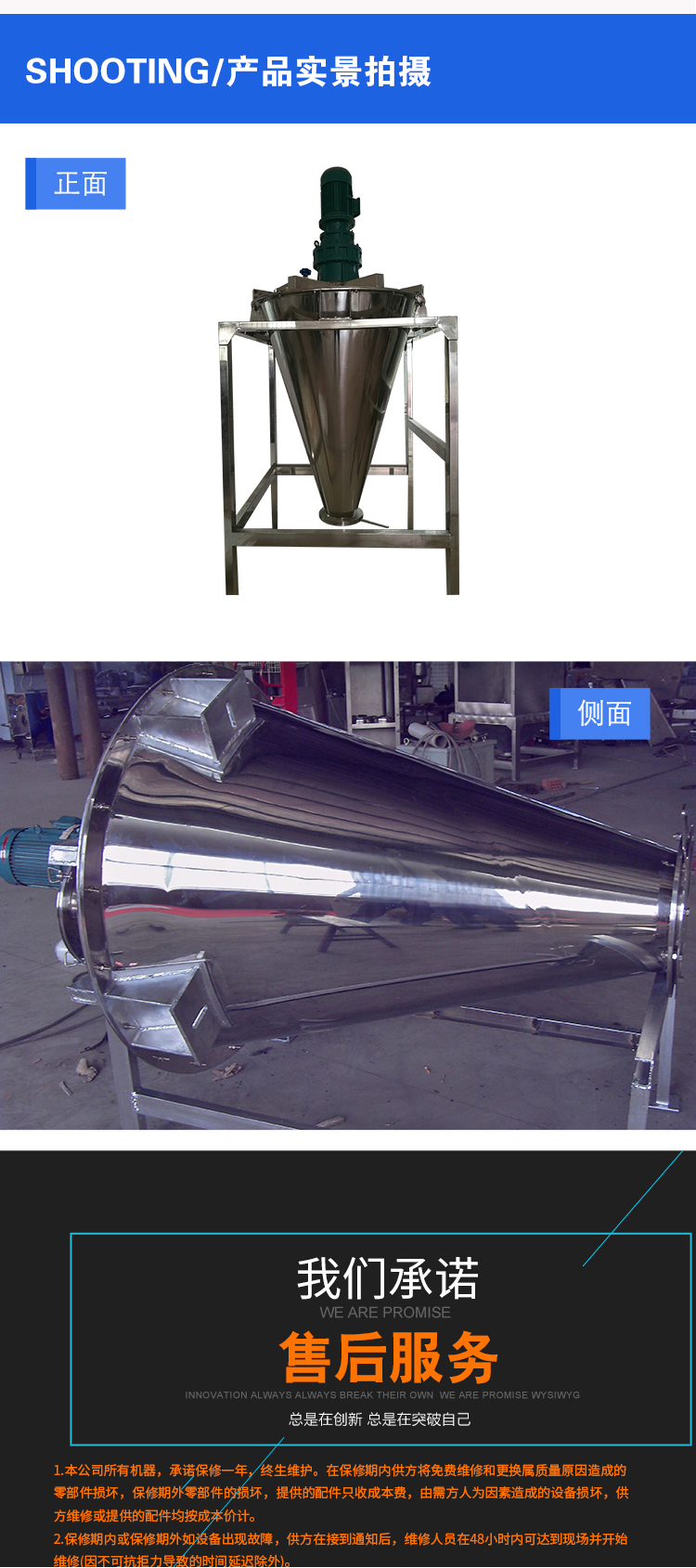 1、雙螺旋錐形混合機(jī)軸承和齒輪壽命,一般2-3年。