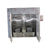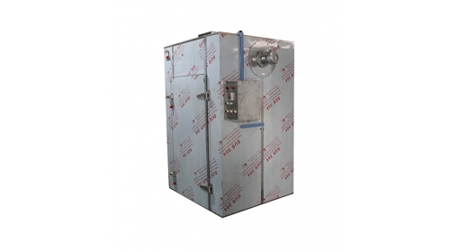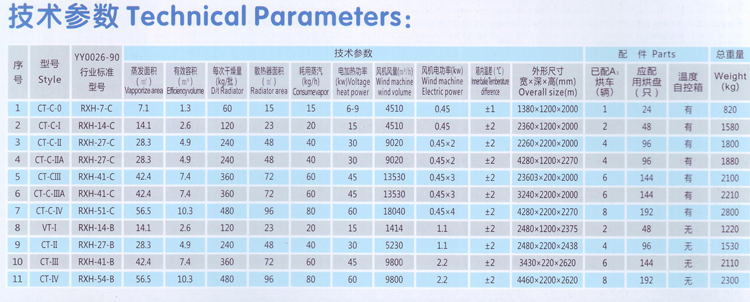 以蒸氣或電為熱源,通過熱交換器加熱,利用風(fēng)機(jī)促使箱內(nèi)熱空氣強(qiáng)制循環(huán),熱空氣層經(jīng)過烘盤與物料進(jìn)行熱交換,并帶走物料的揮發(fā)濕氣,從而完成整個(gè)過程。